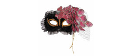 Masque loup paon rose dentelle