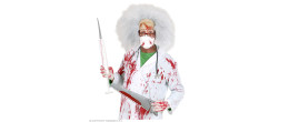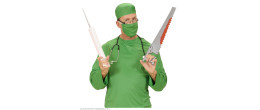 Scie avec lame ensanglantée de 52cm pour compléter un déguisement de clown tueur, médecin ou un déguisement halloween.