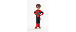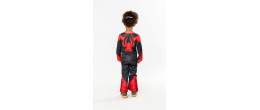 Déguisement Spin, Miles Morales de l'équipe Spidey pour enfant en vente comprenant une combinaison en jersey à manches longue avec impression effet muscle sur le devant ainsi qu'un demi masque en mousse imprimé avec attache élastique et système de fermeture velcro.