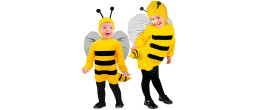 Déguisement insecte abeille pour bébé en vente comprenant une combinaison body jaune à rayures avec une paire d'ailes et une cagoule avec antennes.