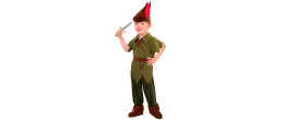 Déguisement Peter Pan, Robin des bois ou elfe pour bébé en vente comprenant une tunique, un pantalon, une ceinture et un chapeau avec plume.