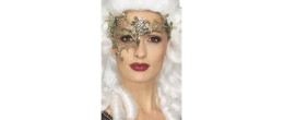 Demi masque en filigrane doré en métal orner de pierre diamanté pour adulte en vente.