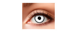 Paire de lentilles de contact Manson couleur blanc en vente pour compléter un déguisement d'Halloween.