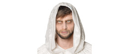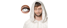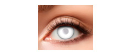 Paire de lentilles de contact yeux blanc (pupille incluse) en vente pour compléter un déguisement d'Halloween.