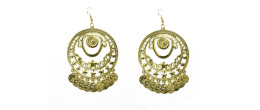 Paire de boucle d'oreille ronde dorée en métal (6.5cm) avec pièces de monnaie en vente.