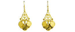 Paire de boucle d'oreille dorée en métal avec pièces de monnaie en vente.