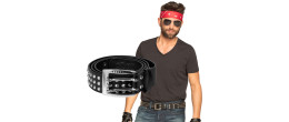Ceinture à clous punk, rockeur, biker en simili cuir noire pour adulte en vente