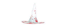 Chapeau de sorcière blanche ensanglanté pour adulte en vente.