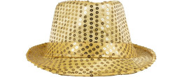Chapeau borsalino disco à sequin doré pour adulte en vente.
