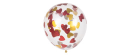 5 ballons latex transparent (30cm) à confettis cœur couleur rouge et doré en vente.