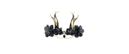 Coiffe gothique noire avec cornes dorée et tête de mort en vente.