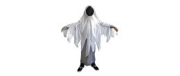 Déguisement de spectre, fantôme Halloween pour enfant comprenant une tunique longue avec capuche et une cagoule noire en vente.