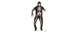 Déguisement de Squelette adulte composé d'une combinaison imprimé à capuche en vente.