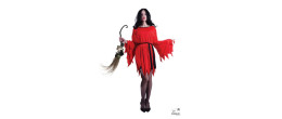 Déguisement robe diablesse, démon courte pour adulte composé d'une robe rouge et une ceinture noir en vente.