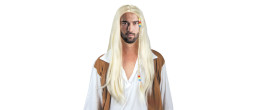 Perruque hippie homme raide avec tresse de couleur blonde. Cette perruque complétera parfaitement votre déguisement de hippie baba cool.