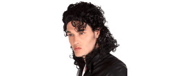 Perruque Michael Jackson noire longue et frisée en vente.